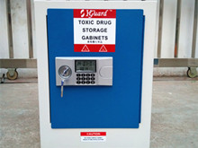 劇毒藥品柜帶電子密碼鎖+機(jī)械鎖,帶防盜報(bào)警功能,雙鎖兩人管理,開門時(shí)需兩人同時(shí)在場(chǎng),符合易制毒化學(xué)品儲(chǔ)存管理要求。